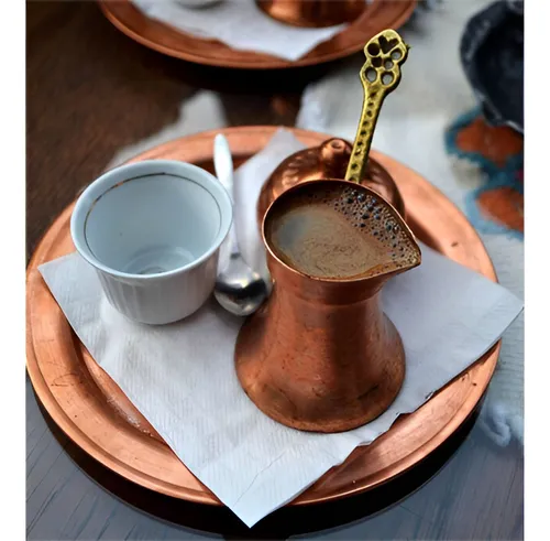 El café árabe comparte la misma técnica básica del café turco —cocción directa en un pequeño cazo de cobre—, pero se distingue por el uso tradicional de cardamomo verde (a veces clavo o azafrán) y un dulzor más pronunciado. El resultado es una bebida densa, aromática y ligeramente picante que sirve tanto de digestivo como de símbolo de hospitalidad en todo Oriente Medio.