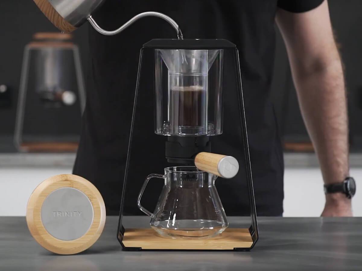 El Trinity One rompe esquemas al reunir tres técnicas —immersion-brew, espresso manual y cold-drip— en una sola torre de acero y cristal. Pensada para el barista experimental, permite alternar estilos sin cambiar de equipo y exhibe un atractivo industrial capaz de venderse tanto como pieza de diseño como herramienta profesional.